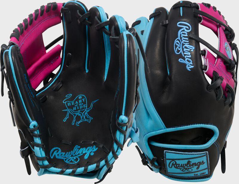Step onto the dirt with throwback swagger in the Rawlings Heart of the Hide Spring Break infield glove. Featuring a bold Black shell with Columbia Blue and Berry accents, this glove channels classic 90s highlight-reel energy with a modern edge — made for players who want their style to pop as much as their defense. Crafted from Rawlings’ world-renowned Heart of the Hide steerhide leather, this glove delivers the premium feel, durability, and structure trusted by elite infielders. The 11.5-Inch size, 200 pattern, and Pro I Web design create a quick, responsive pocket built for smooth transfers, fast hands, and confident control on every ground ball. A padded thumb sleeve and comfortable wrist lining add support and game-ready comfort through long practices and big-game moments. Part of the Spring Break Collection, this glove blends pro-level craftsmanship with bold, retro-inspired attitude for players who play fast, compete hard, and aren’t afraid to stand out. Lock it in, make every play count, and own the infield with the Rawlings Heart of the Hide Spring Break infield glove.