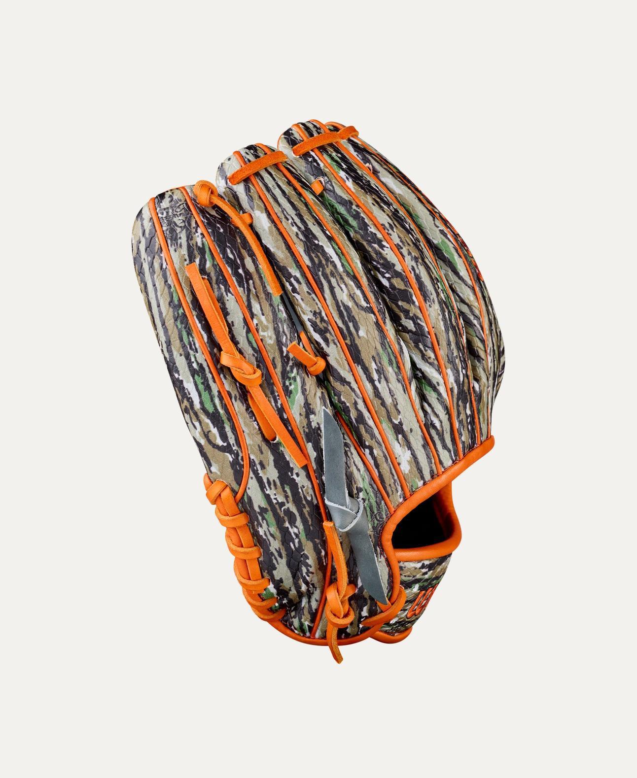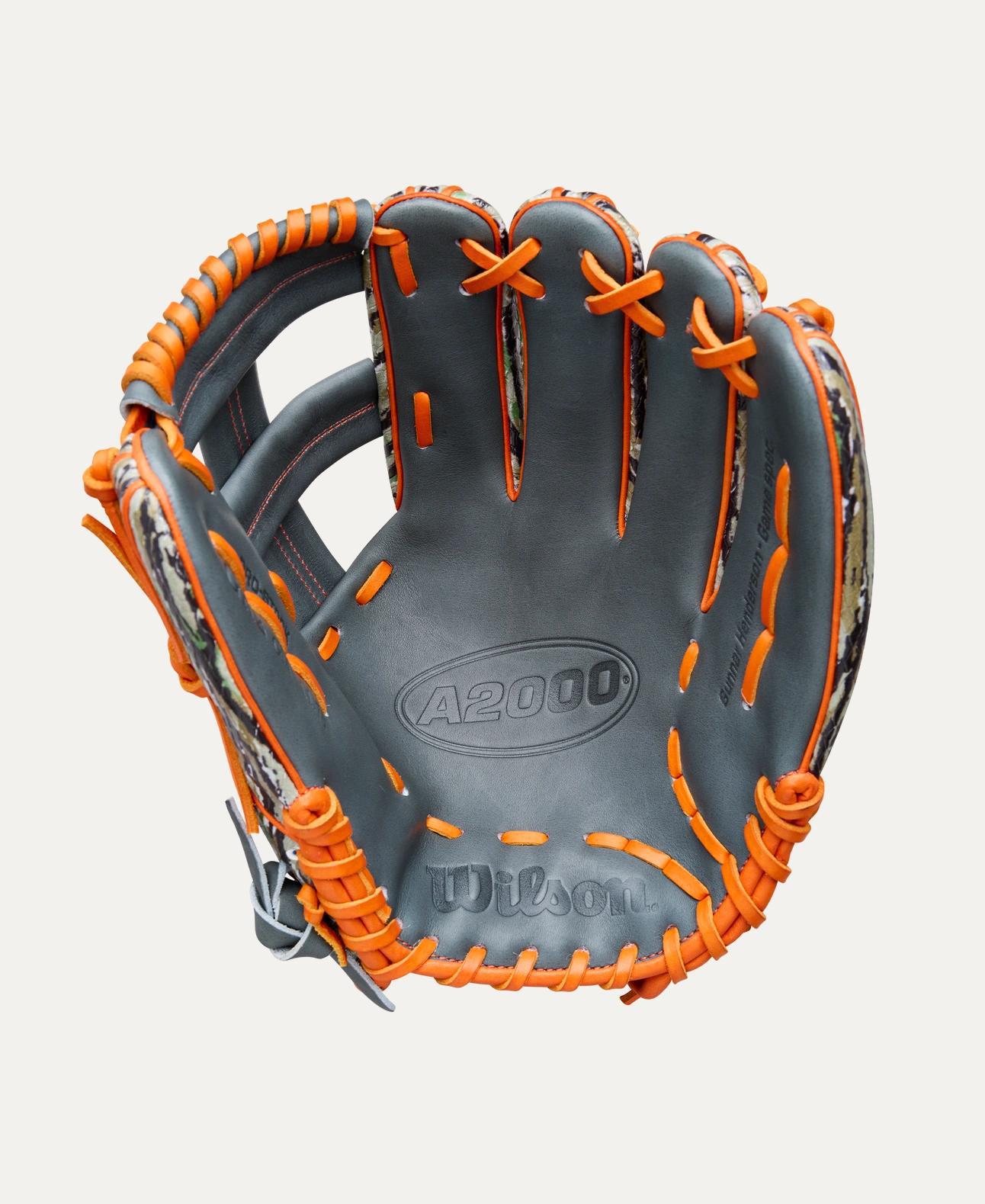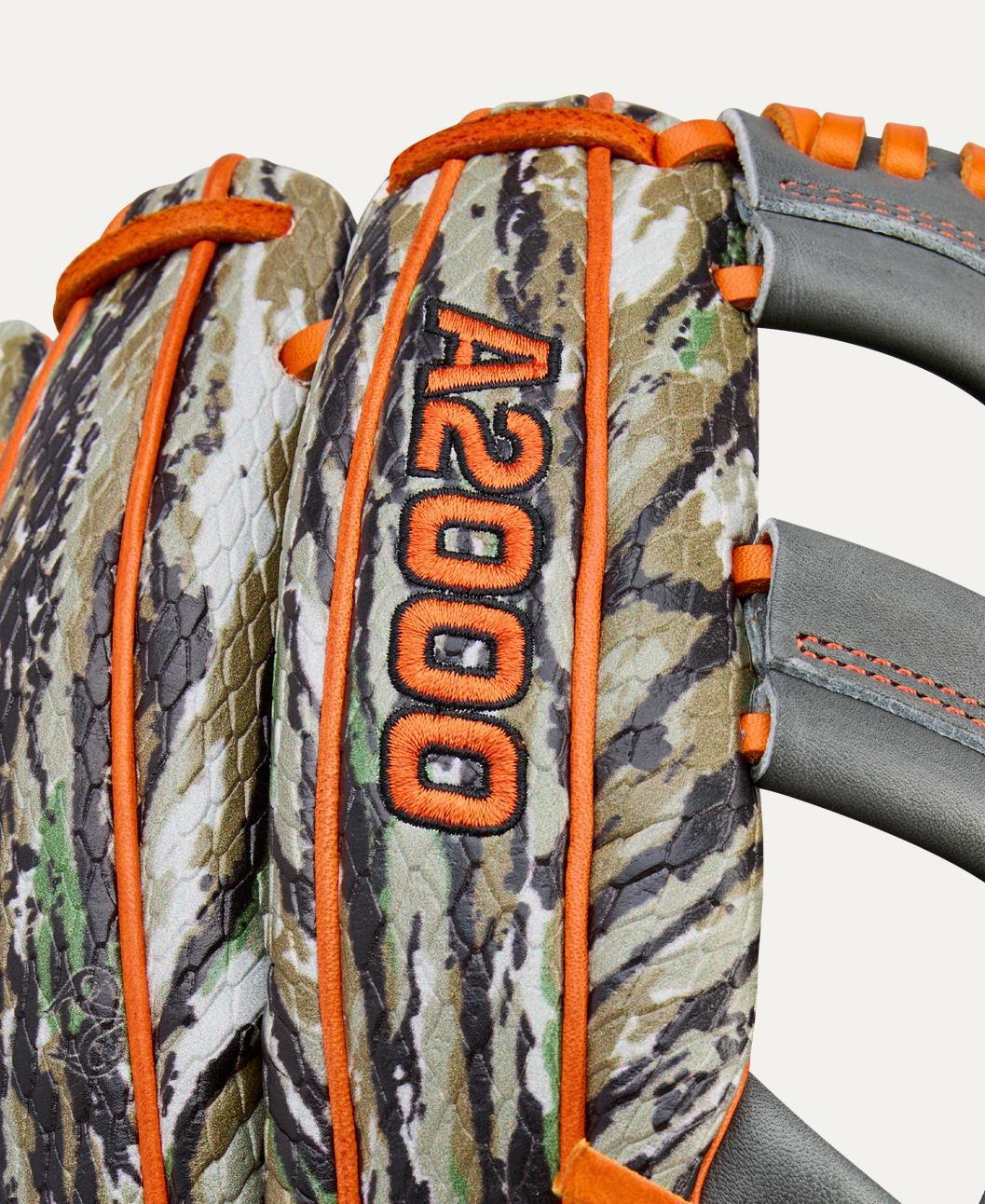 Set the trap for opposing hitters with Gunnar Henderson’s Winter 2025 A2000® GH2 GM, an 11.75” infield baseball glove designed with Realtree Original® Camo SuperSnakeSkin™ across the back. Made for the outdoorsman, Gunnar’s preferred glove is disguised to track ground balls and line drives at shortstop, second base or third base. Inspired by the A2000® EL3, Gunnar’s A2000® GH2 checks in at 11.75” with a Single Post Web and Coal Pro Stock® leather. Orange blazes across the laces, binding and outlined bold logos to offer high visibility on the infield.
