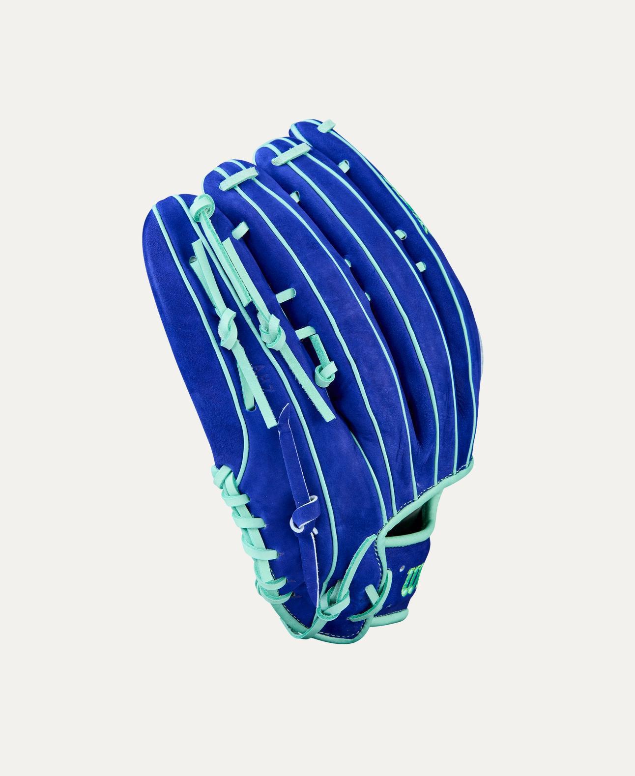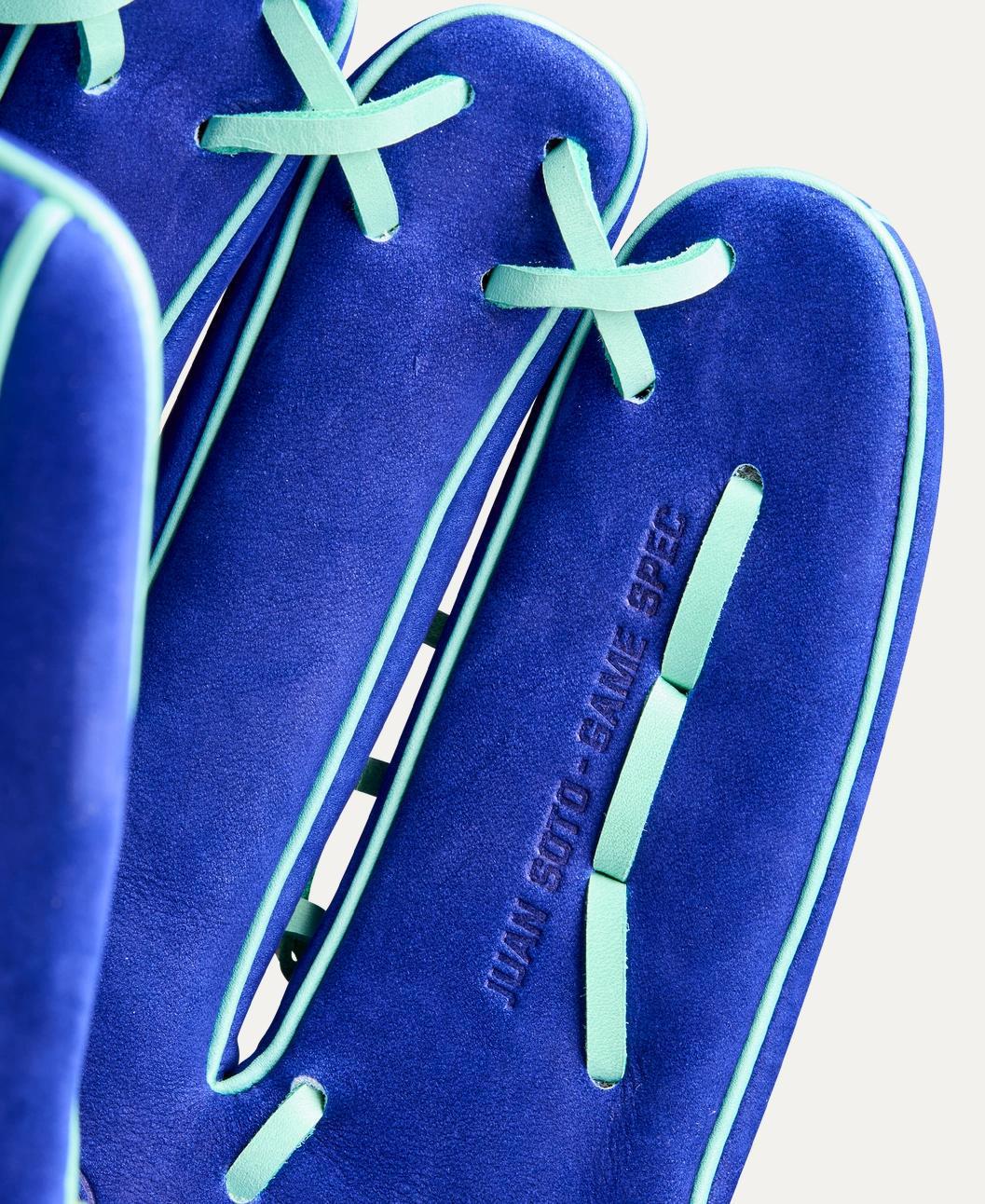 Put on a show in the outfield with the Winter 2025 Juan Soto A2K® JS22 Game Model glove, designed by Soto with Buffed Blue Pro Stock® Select leather for buttery smooth performance on diving catches and home run robberies. Wilson’s premium Pro Stock® Select leather delivers lasting performance, and the buffed finish is soft to the touch for a luxurious feel. Seafoam accents mirror New York’s Statue of Liberty, and the Dual Post Web reels in catches across the grass. Expert Craftsmen in Japan form the A2K with Double Palm Construction™ – an extra layer of leather between the palm shell and liner – that forms to the players hand during the break-in process and holds its shape over time.